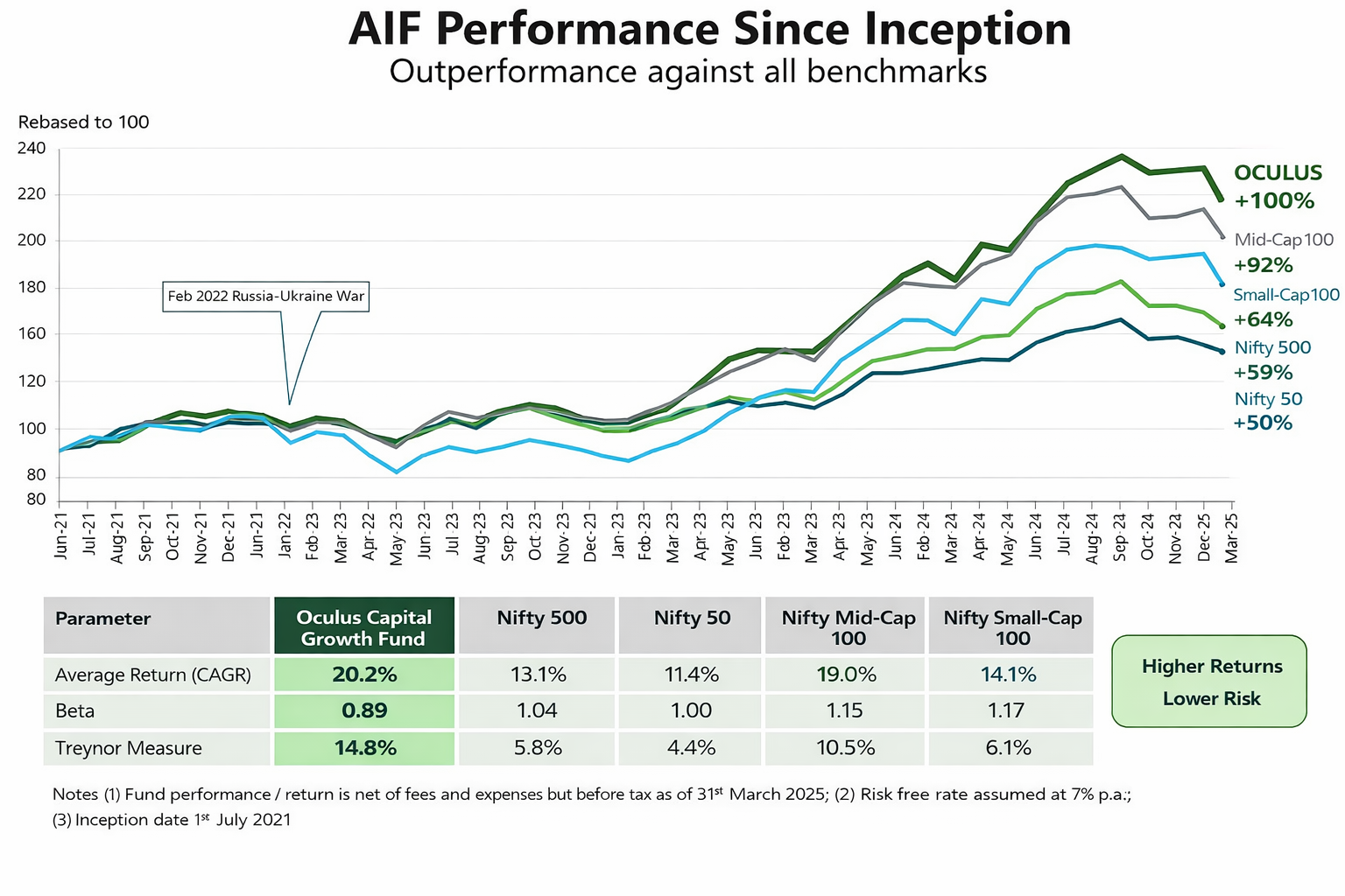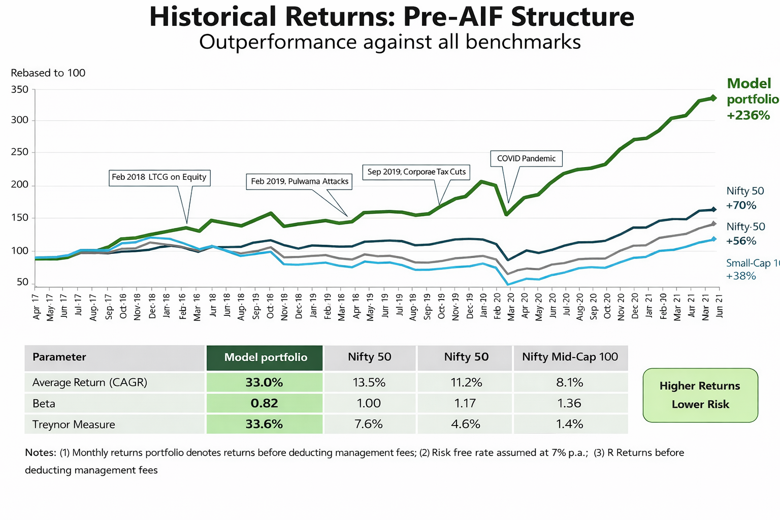 Chart showing AIF returns from 2020–2024 with annual growth percentages